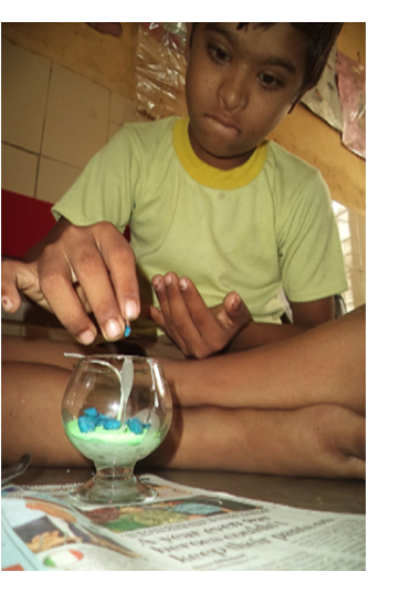 Vishal is 11 years old and has Down's Syndrome. But if you watch him craft candles, you too, like us, will call it making magic! He defies his ailment, to cautiously pour gel into the glass cups, watch it solidify and then add the coloured crystals! Possibly not many so-called 'regular' children will apply such precision.